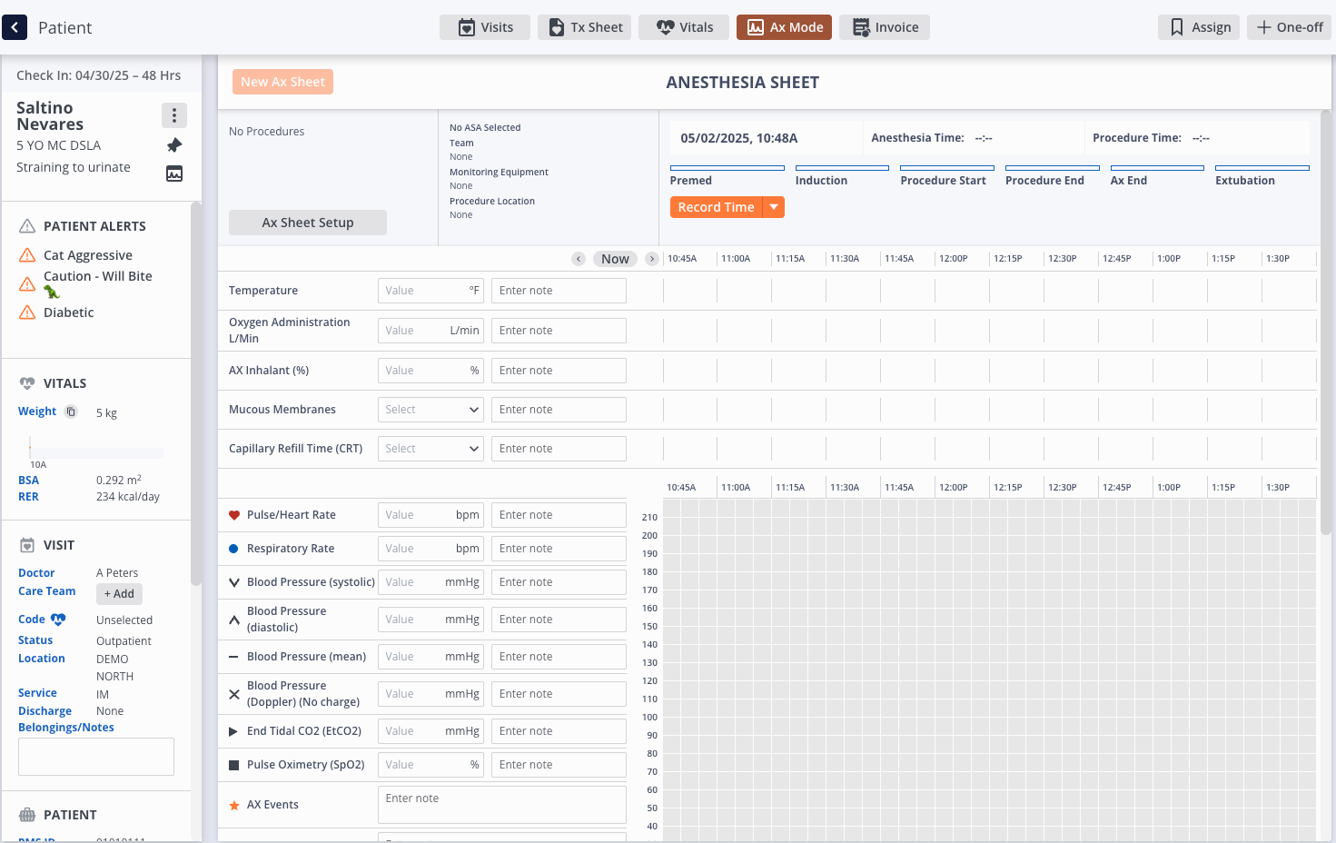 Built into Instinct Treatment Plan and Instinct EMR, Ax Mode is a digital anesthesia monitoring tool purpose-built for the demands of emergency and specialty care.