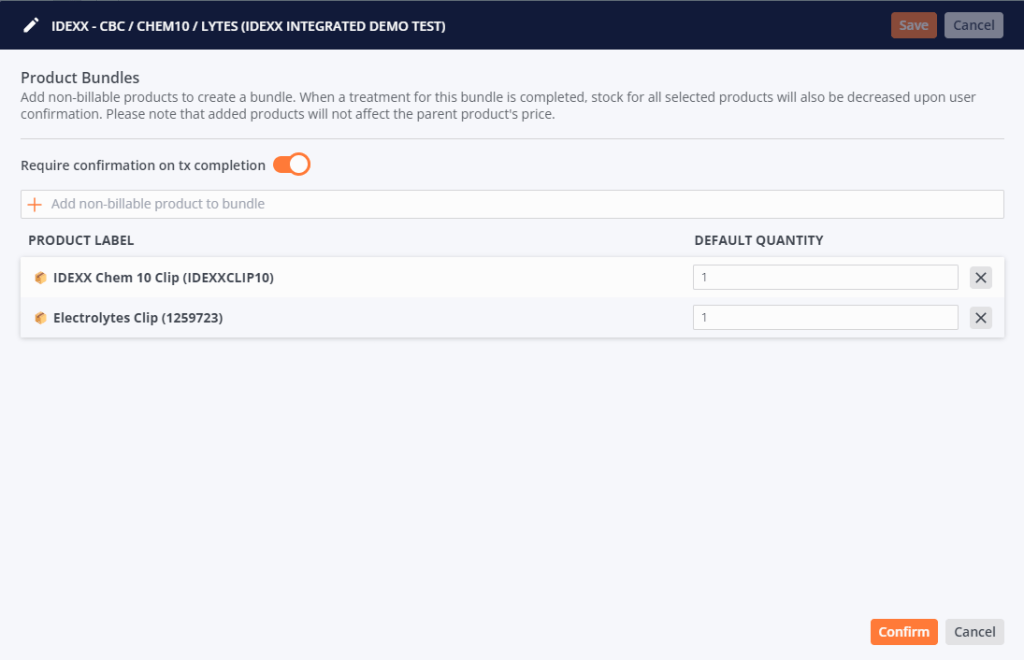 Some items—like lab clips used for in-house tests—aren’t billed directly to the client, but they still need to be accounted for. Stockroom lets you group these items into Product Bundles without adding charges to the patient’s invoice. That way, it’s easier to accurately manage inventory of multiple products related to specific activities.