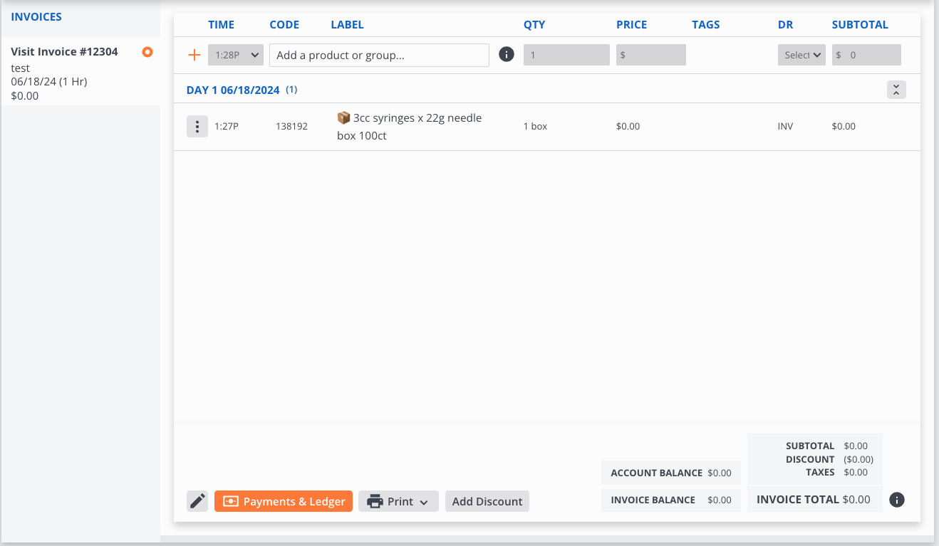 💡 Pro Tip: Create an “Inventory Patient” account and order bulk items through this account. Close the invoice every 30 days to keep inventory records tidy.