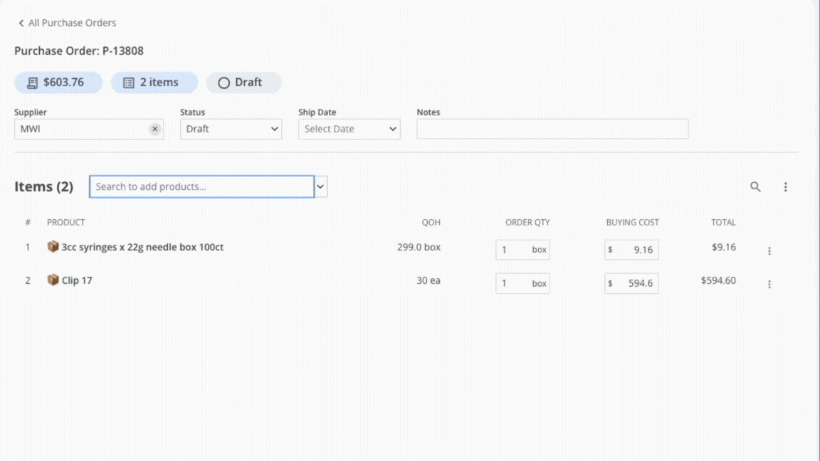 Stockroom purchase orders don’t have dedicated fields for shipping costs or taxes, but you’ll still want to track those costs.