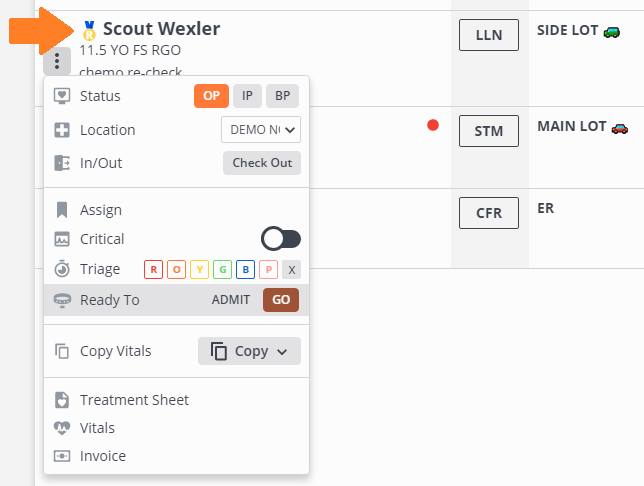 The medical team (veterinarian or nurse) should be the last person to put this icon on the patient and the front desk will know that it is safe to check out.